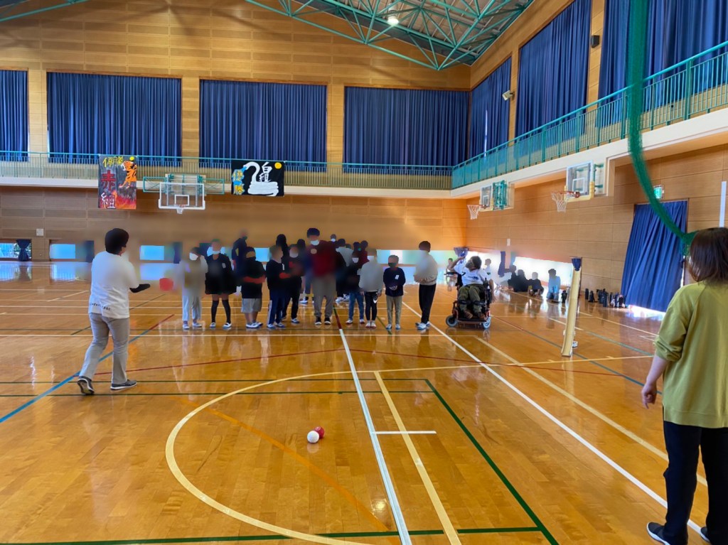 3セット行ったのですが、セット終わりに転がったボールを取ってきてくれる生徒さんが2人いて、私に渡そうと取り合いが勃発。譲り合いも見れたし、これも良いなと思ったのでした。こういう子達が、障がい者と触れ合うことで、興味を持ってくれて後々の介護業界に来てくれることを密かに願いつつ、手伝ってもらった後は「ありがとう」と声をかけていました。