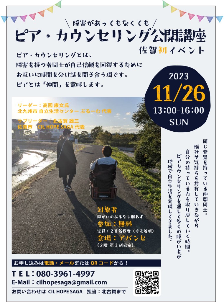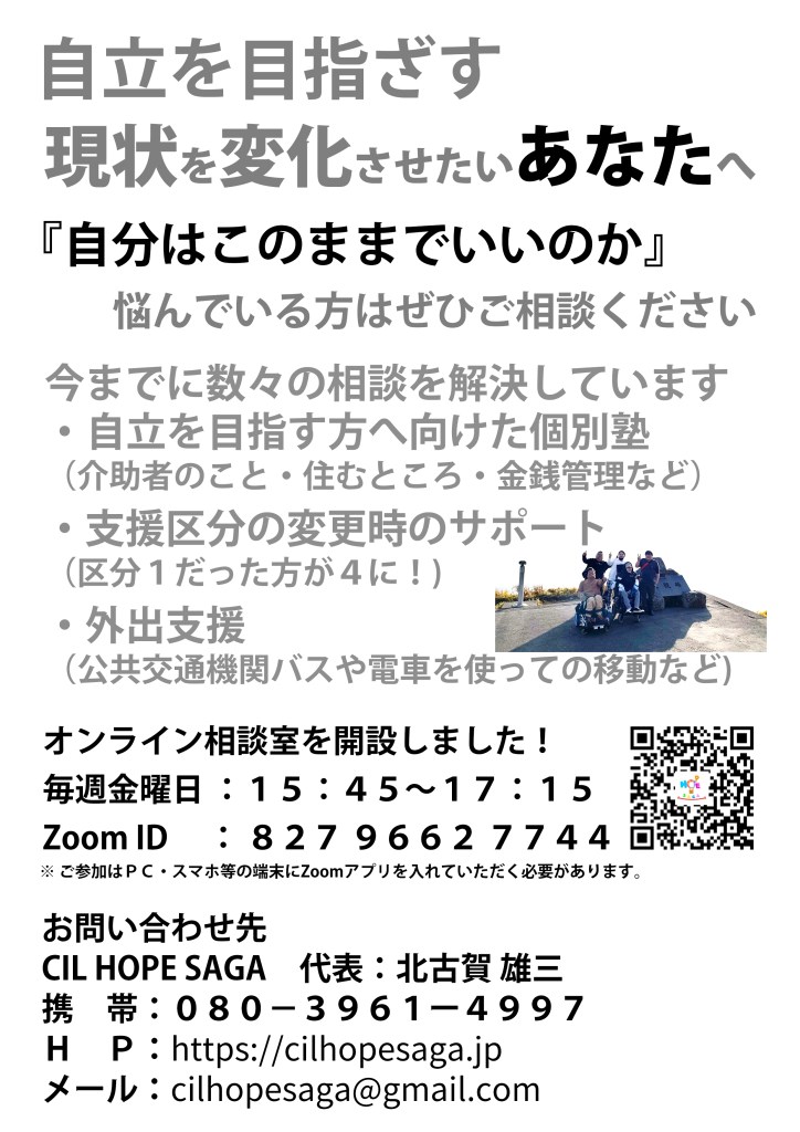 今月を持ってCIL HOPE SAGAの活動を終了させていただきます。