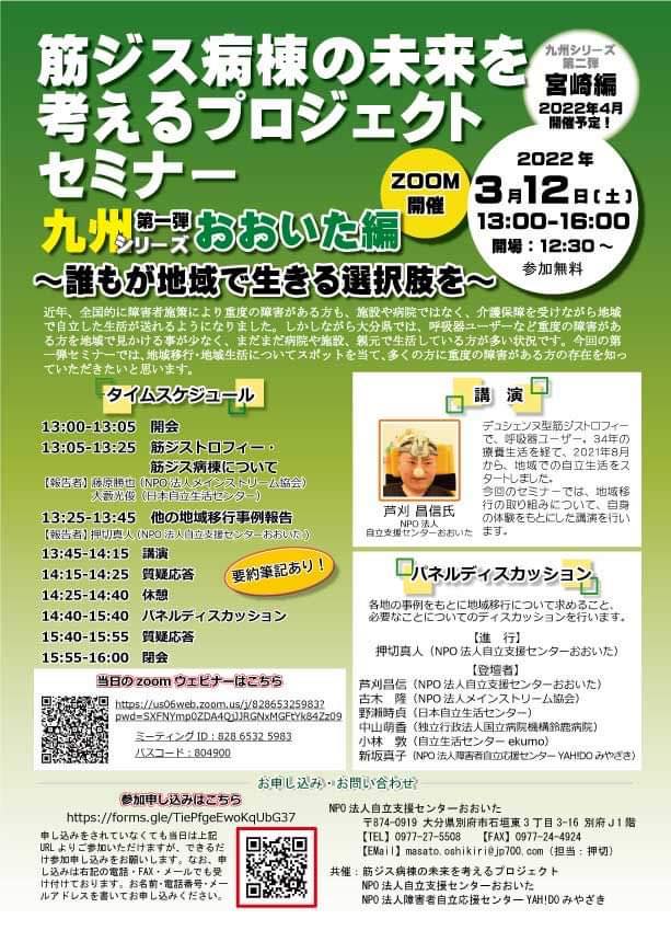 明日は、自立生活センターおおいたでオンライン講演会を予定されています。一度話を伺ったことがあるアッシーこと、芦刈氏が登壇されます。詳しくは以下をご覧ください。
